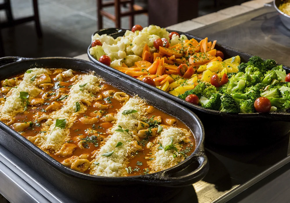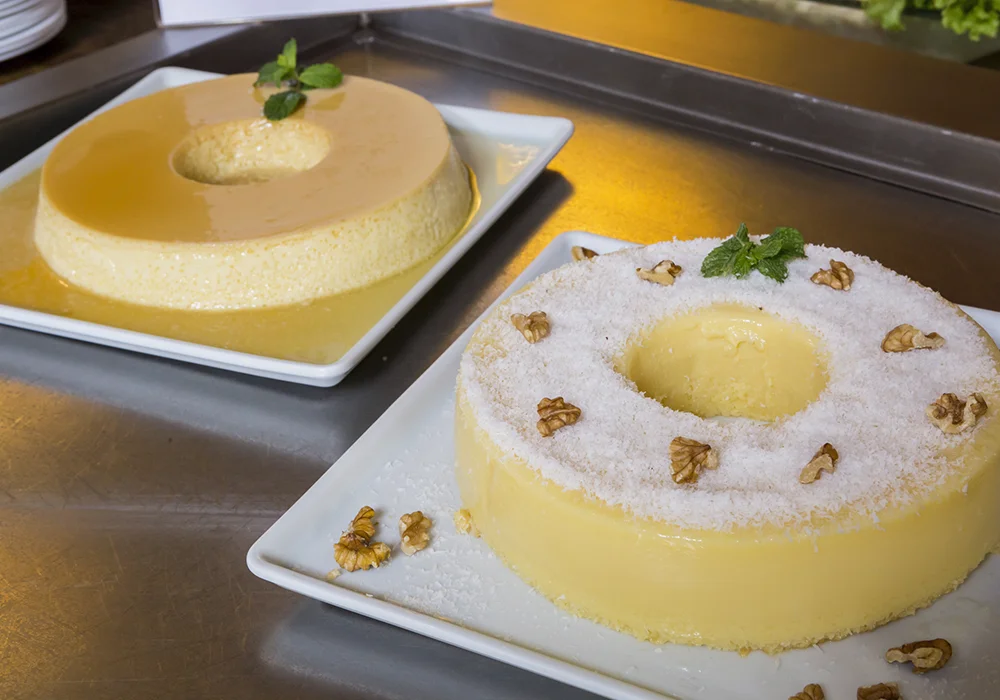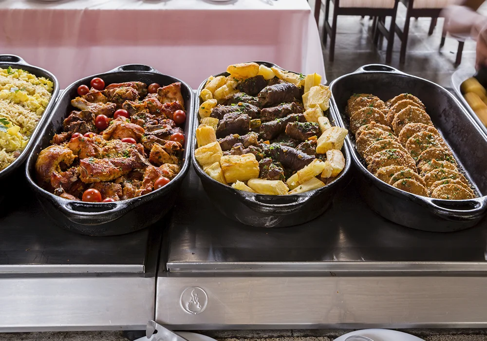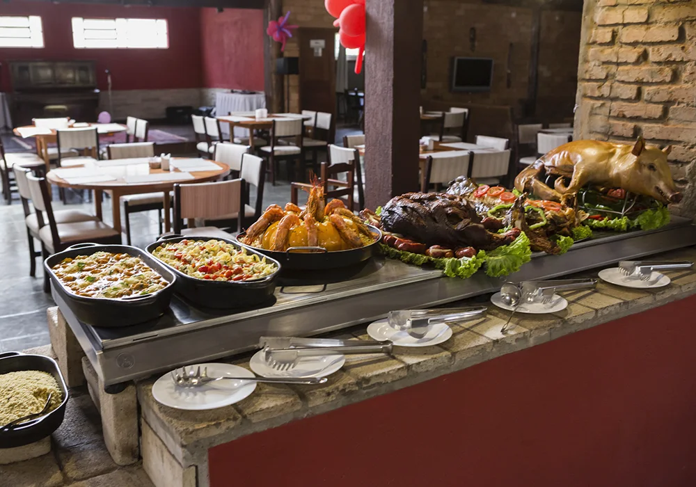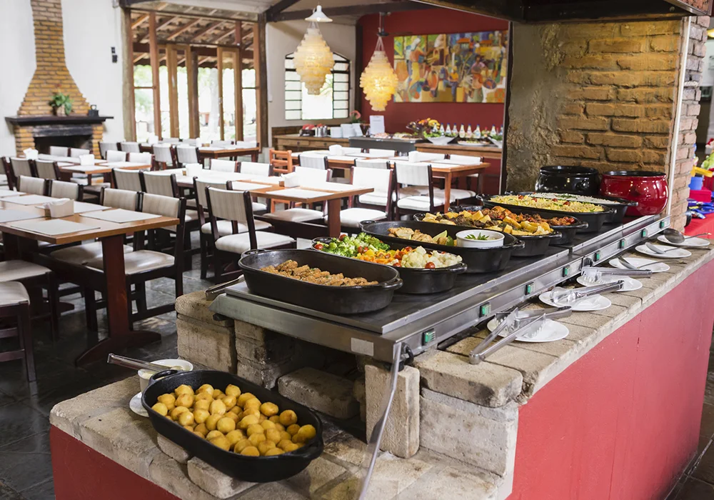 Nossos almoços e jantares variam por temporada e incluem um Cardápio do Chef com 15 tipos de saladas, 12 pratos quentes da culinária do interior e internacionais, e 5 sobremesas, incluindo doces caseiros e frutas da estação, sem esquecer do nosso tradicional pudim de leite condensado.